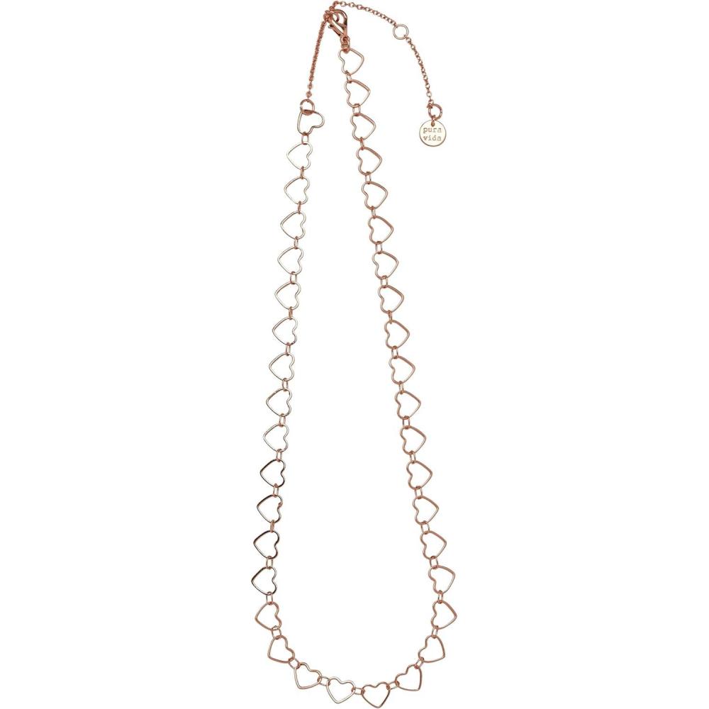 Pura Vida 14″ Rose Gold or Silver Plated Heart Charm Choker Necklace – Adjustable Chain, Brass Base – 3″ Extender(Rose Gold)