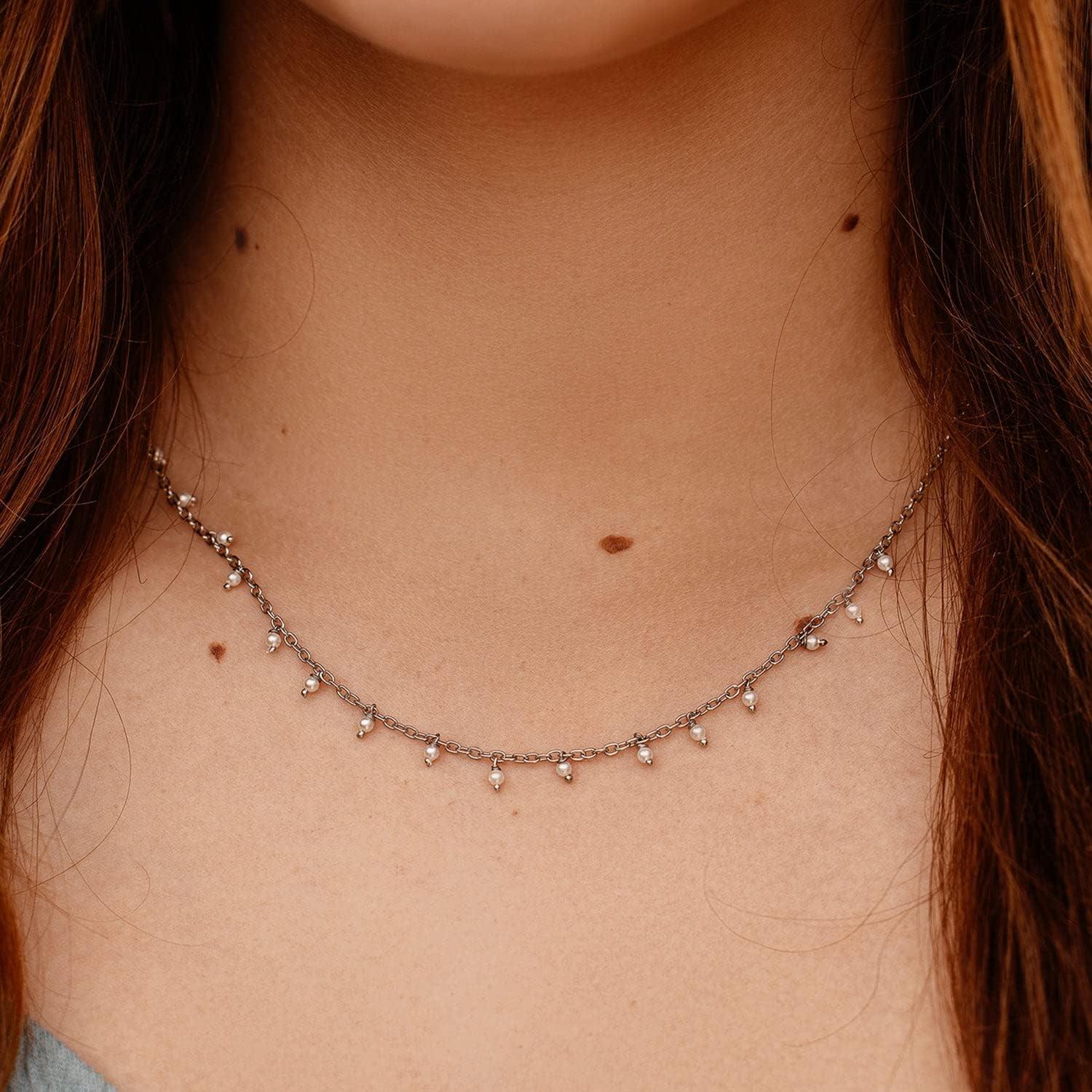 Pura Vida 14″ Silver or Rose Gold Hanging Pearl Beaded Choker Necklace – Statement Necklace with Synthetic Pearls – Necklace for Women, Necklaces for Ladies, Boho Jewelry for Women – 3″ Extender(Silver)