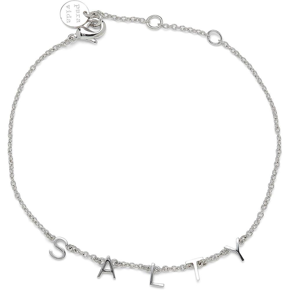 Pura Vida 7.25″ Silver Salty Letter Charms Bracelet – Brass Base, Adjustable Chain – 1″ Extender