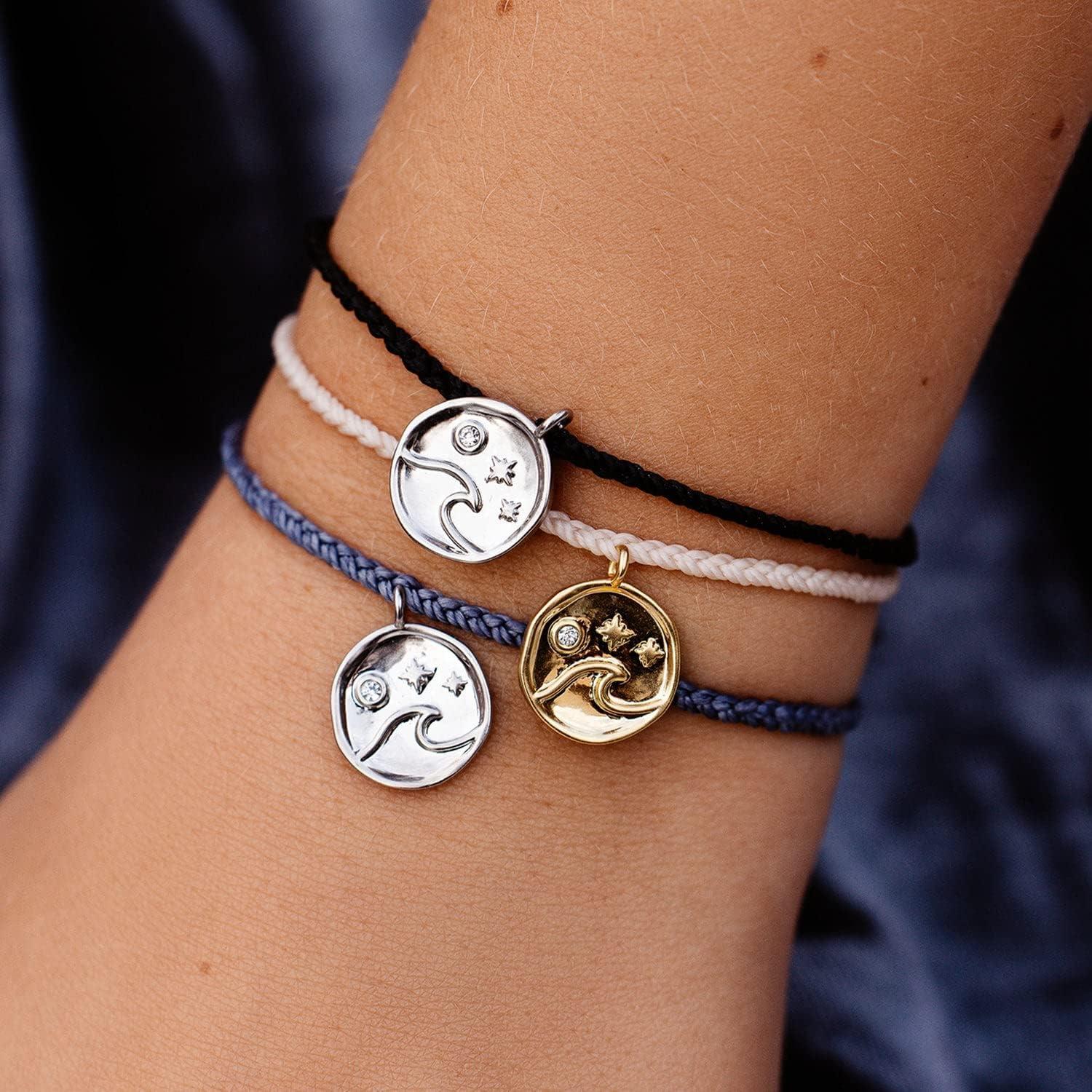 LIVE FREE & ENJOY THE PURE LIFE Specially made for effortless styling in your fave destinations Fall in love with the laid-back lifestyle and celebrate life's simple pleasures by wearing the Crystal Wave Coin Bracelet from Pura Vida! Turn a basic getup into a gorgeous statement look with this handmade masterpiece! Designed to complement any outfit, this bracelet has an eye-catching charm for a piece that's stunning on its own and striking when paired with other accessories! Its wax-coated strings will not lose color or disintegrate even when exposed to water! Be it on the beach, streets, or even in the most undiscovered paradise, our chic accessories let your natural beauty shine with cool, laid-back designs that effortlessly elevate your look. Live freely and embrace the Pure Life with Pura Vida. Handcrafted to be as unique as you Each Pura Vida accessory is handmade by highly skilled artisans around the globe, granting you a unique piece that's unlike any other! Our stylish accessories boast a versatile yet chic design that's perfect for round-the-clock wear. Designed with a beautifully plated “P” charm that stands for our commitment to living the Pure Life—a true mark of Pura Vida! Join us in making a difference With a community that's continuously growing from San Diego to Central America and beyond, we stay true to the core of what we do—giving back. With every purchase of our products, you become our partner in providing sustainable jobs and fair employment to artisan communities and help us in giving back to charities and helping protect our planet! Spread the “Pura Vida” spirit and help us in creating a positive change for our people and our planet!