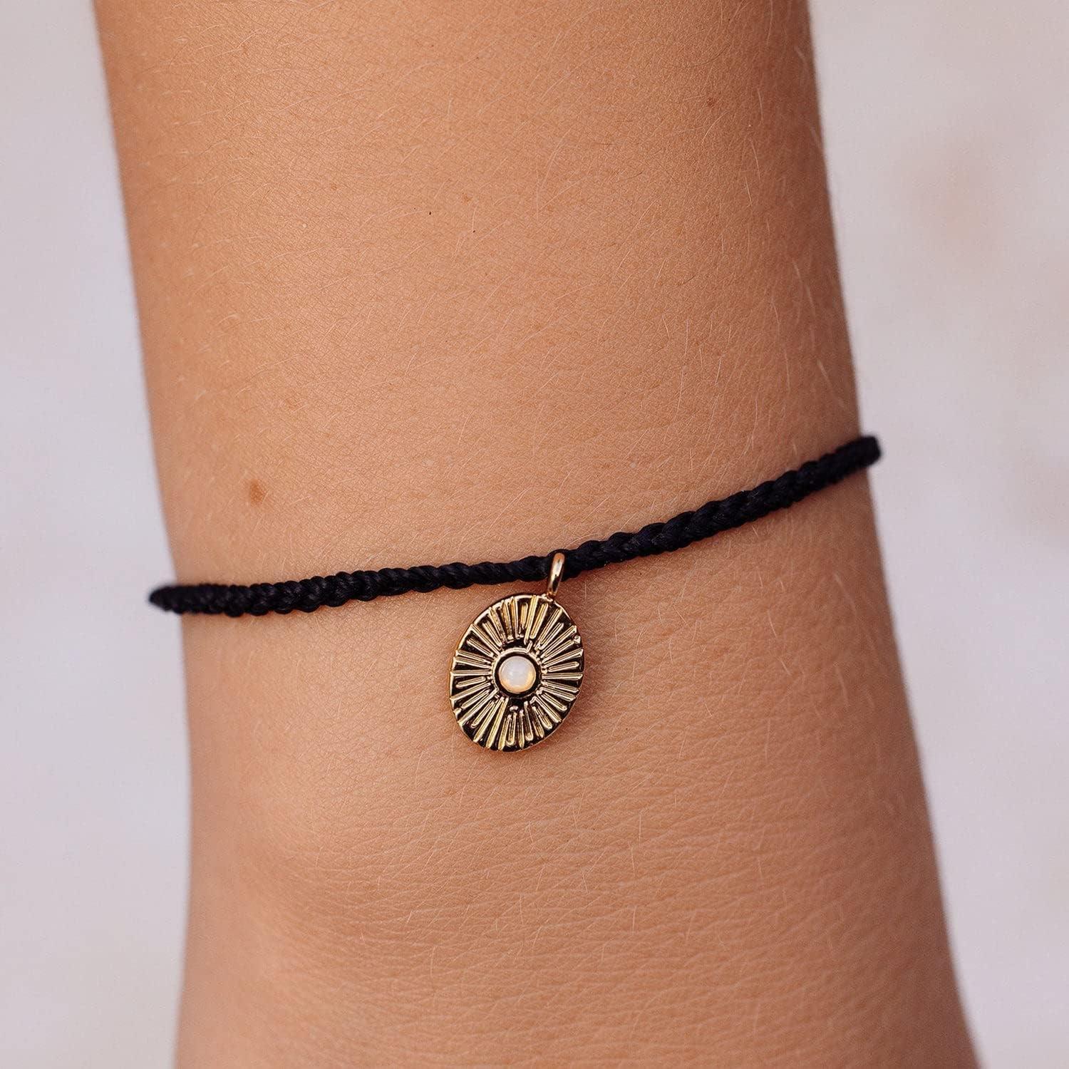 Pura Vida Bracelet Silver or Gold Sun Ray Charm Bracelet – Adjustable Bracelet with Waterproof Band, String Bracelet for Women – Stackable Bracelets, Handmade Braceletss(Black)