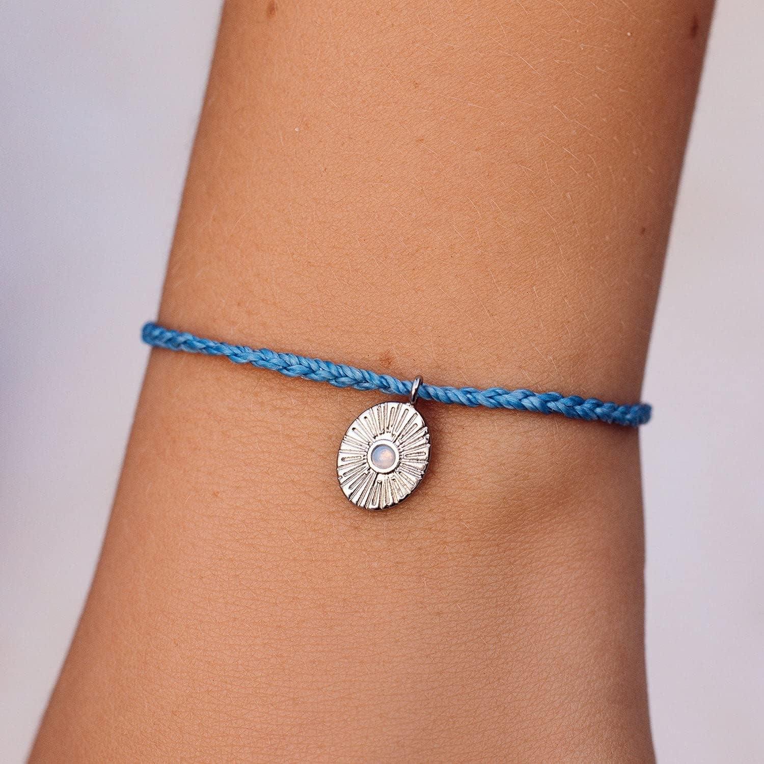 Pura Vida Bracelet Silver or Gold Sun Ray Charm Bracelet – Adjustable Bracelet with Waterproof Band, String Bracelet for Women – Stackable Bracelets, Handmade Braceletss(Sky Blue)