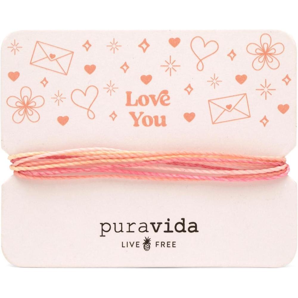 Pura Vida Bracelets Gift Love You Card Bracelet Stack for Women, Pink
