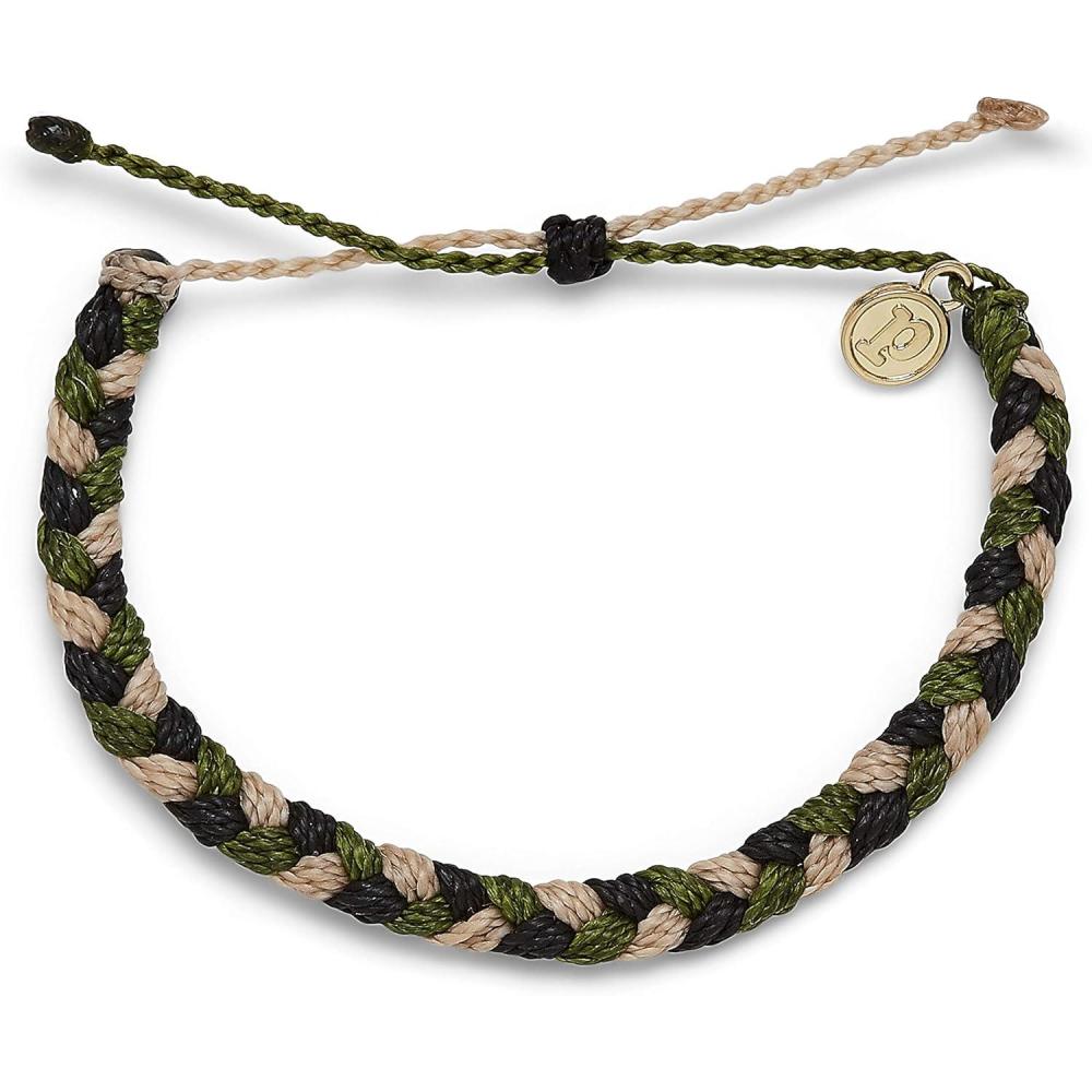 Pura Vida Braided Bracelet – 100% Waterproof, Adjustable Band – Brand Charm(Camo)