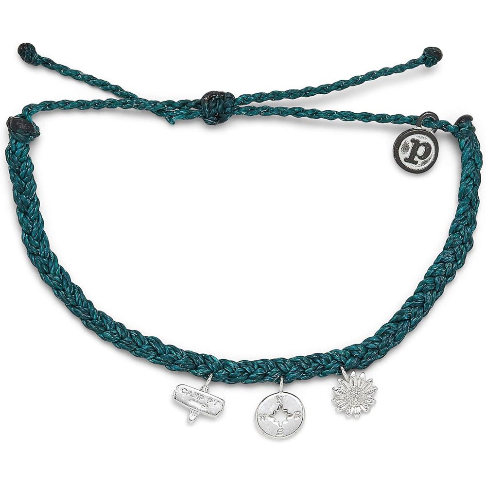 Pura Vida Silver or Gold Happy Camper Bracelet – 100% Waterproof, Adjustable Band – Brand Charm(Teal)