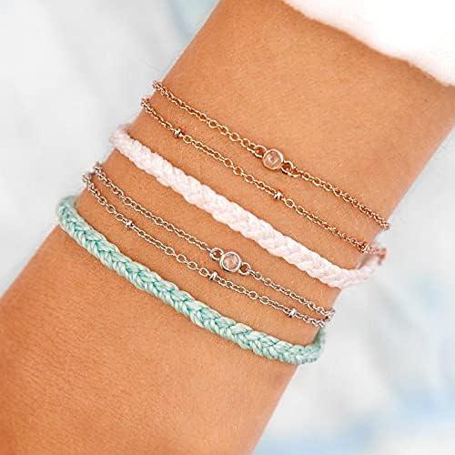 Pura Vida Silver or Rose Gold-Plated Satellite Chain Bracelet – Adjustable Band, Coated Brand Charm(Silver / Seafoam)