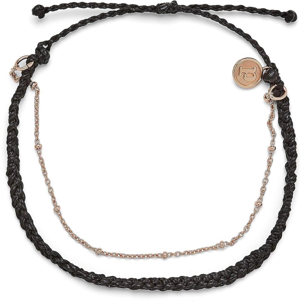 Pura Vida Silver or Rose Gold Satellite Chain Anklet – Adjustable Band, 100% Waterproof – Brand Charm(Rose Gold / Black)