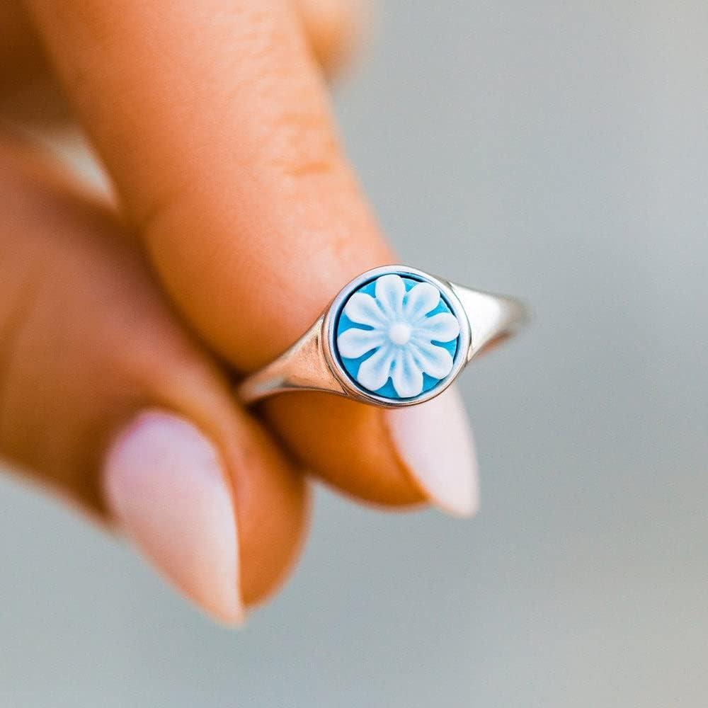 Pura Vida Silver-Plated Cameo Flower Stackable Ring – Brass Base, Stylish Design – Size 5-9
