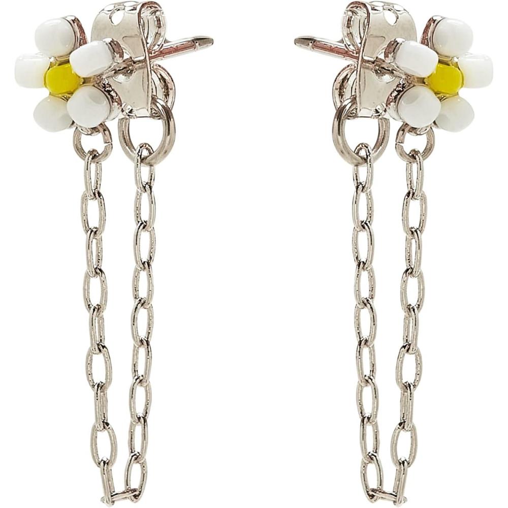 Pura Vida Silver Plated Daisy Seed Bead Chain Wrap Earrings w/Glass Beads – Brass Base, Sterling Silver Posts – 1 Pair