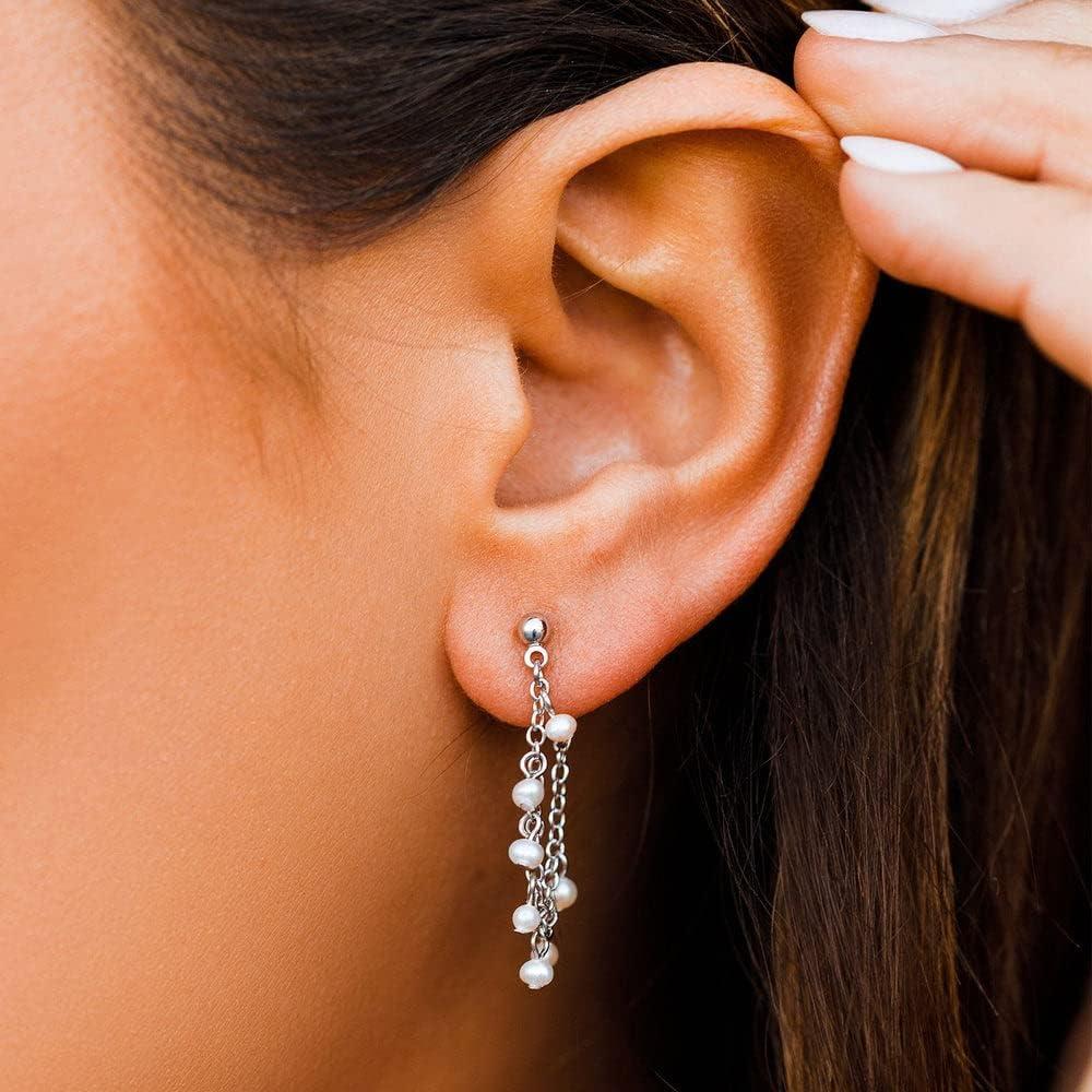 Pura Vida Silver-Plated Pearl Chain Wrap Earrings – Brass Base, Sterling Silver Posts – 1 Pair