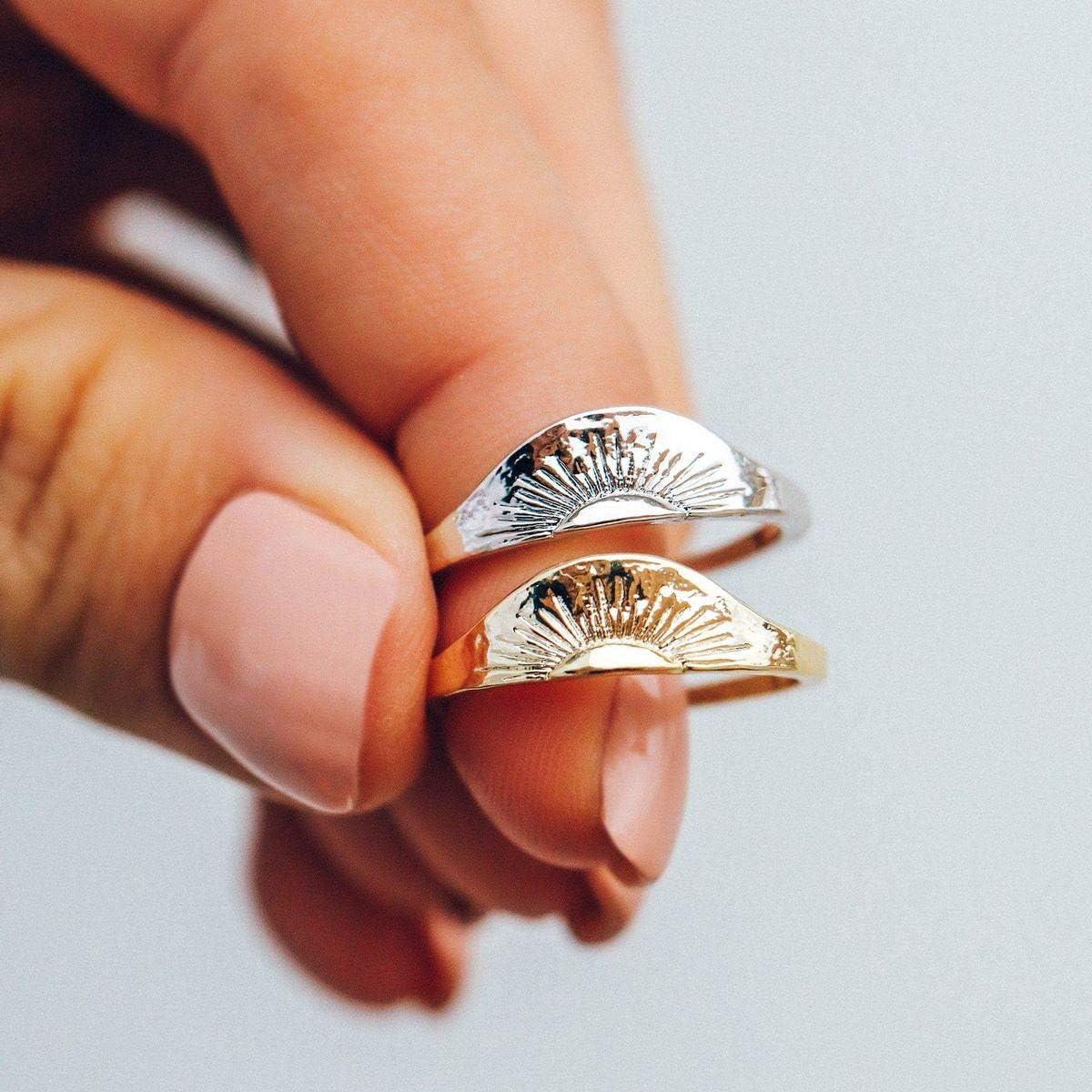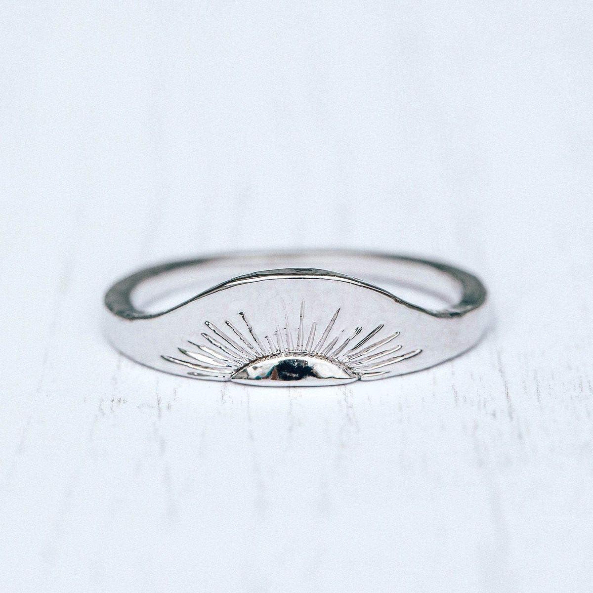 Pura Vida Silver Rising Sun Ring – Brass Base Band, Rhodium Plating – Sizes 5-9