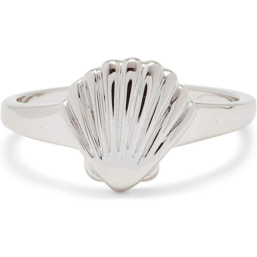 Pura Vida Silver Shell Signet Ring – Brass Base Band, Rhodium Plating, Sizes 5-9
