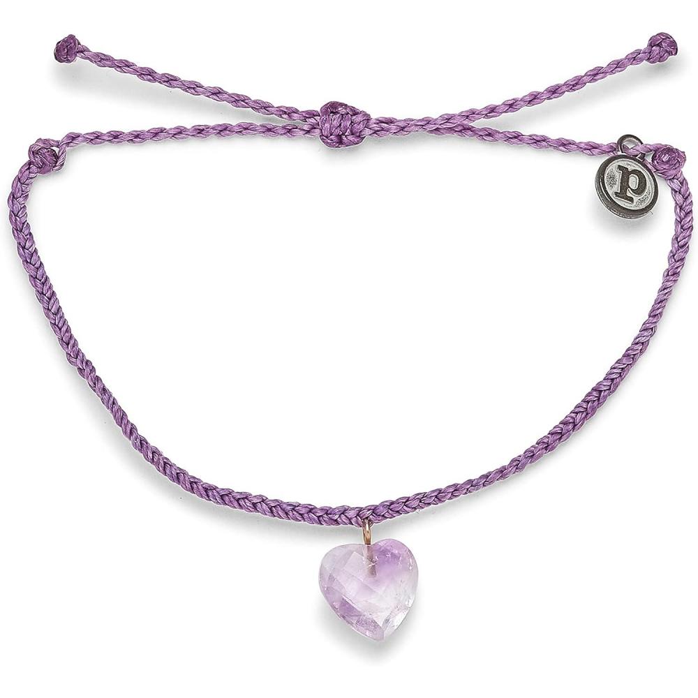Pura Vida Stone Heart Charm Bracelet w/Amethyst or Rose Quartz – Adjustable Band, 100% Waterproof(Light Purple)
